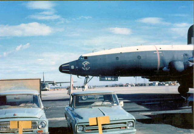 2nd. Picture from the left: TE-8 taxies by parked trucks at Chu Lai. Circa 1968.