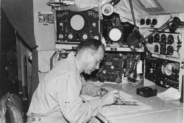LCDR Don Lee who was new to squadron at the time of this photo is the navigator at work getting the