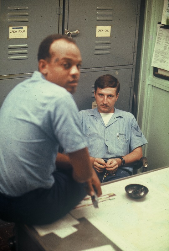 The guy on the right blowing smoke was on Berl Welch's crew he was a first class and was a Flight Engineer