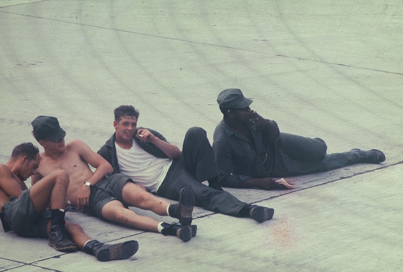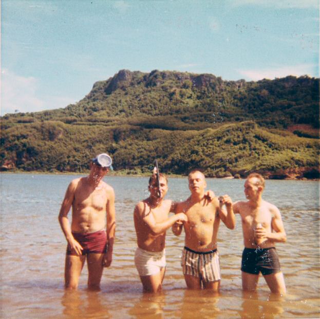 - 1st. picture from the left: VW-1 buddies at Talofofo Bay 1964, pictured left to right are: Pappy Long,
