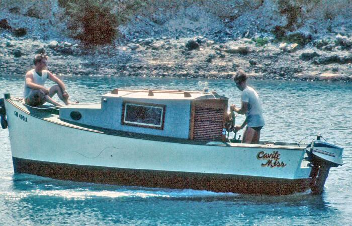 The wooden boat "Cavite Miss" was built by George Beegle and Winfield Nagle. George is