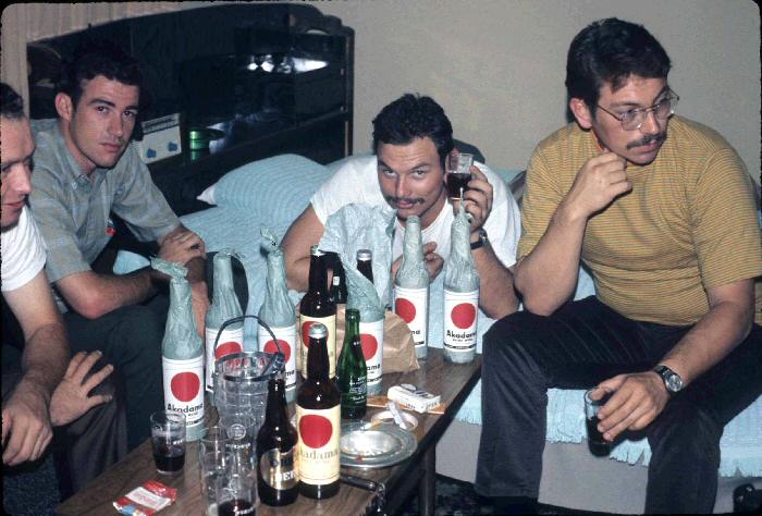 - 1st. picture from the left: A group of VW-1 buddies having an Akadama Typhoon party in Okinawa.