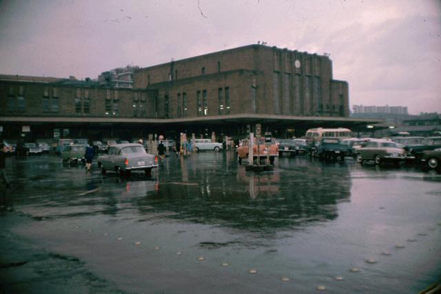 2nd. picture from left: The Yokohoma Train Station in the rain.