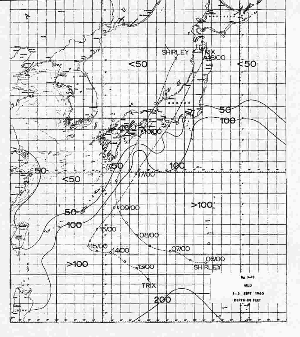 - J. CHANGES IN MIXED LAYER DEPTH (MLD) RESULTING FROM THE TRANSIT OF TYPHOONS SHIRLEY AND TRIX