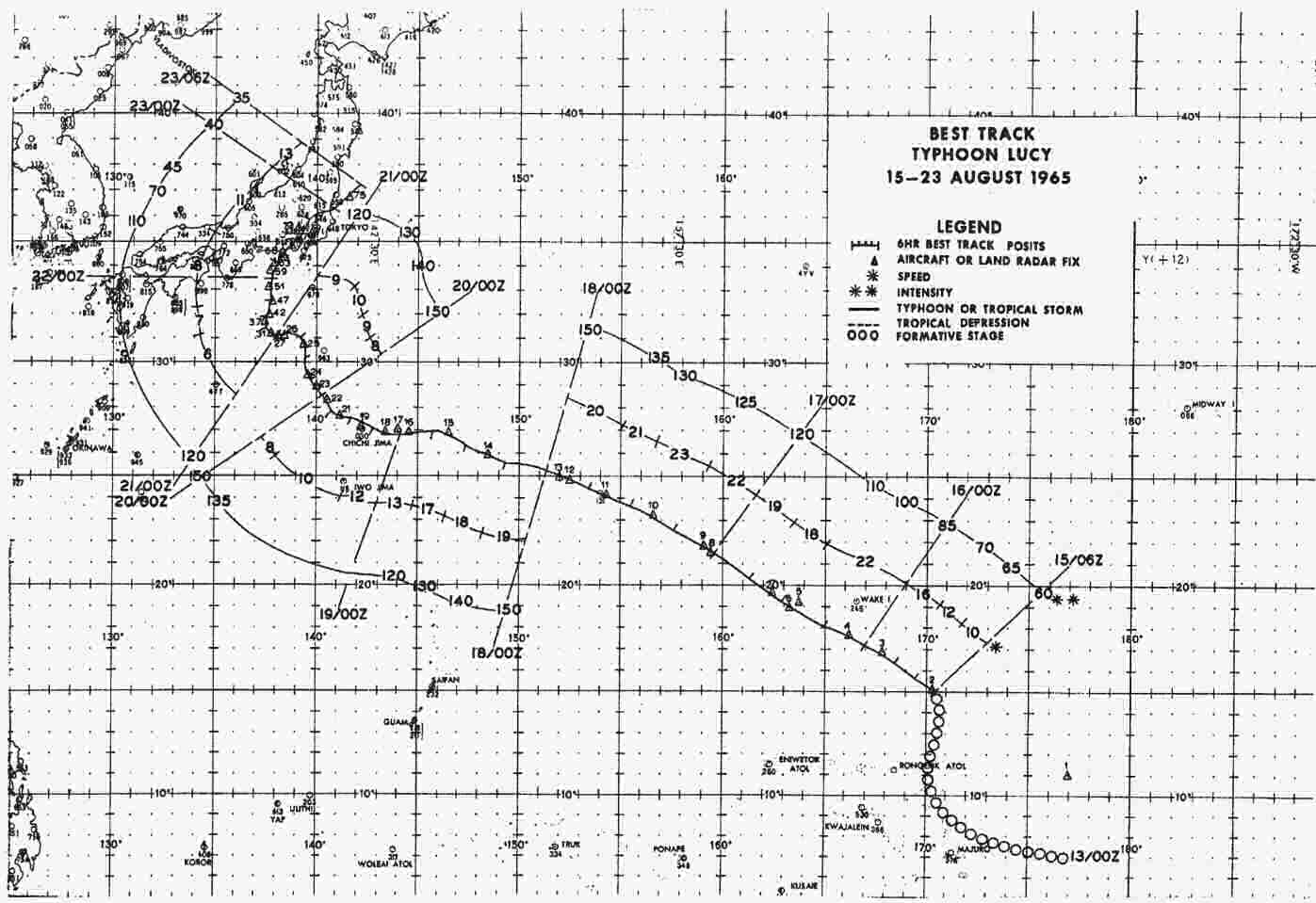 | 19 | 190900Z | 27.1N | 142.2E | VISUAL | -- | -- | 110 | -- | -- | -- | CHICHI JIMA IN S EDGE WALL CLD EST EYE 4 MI N |