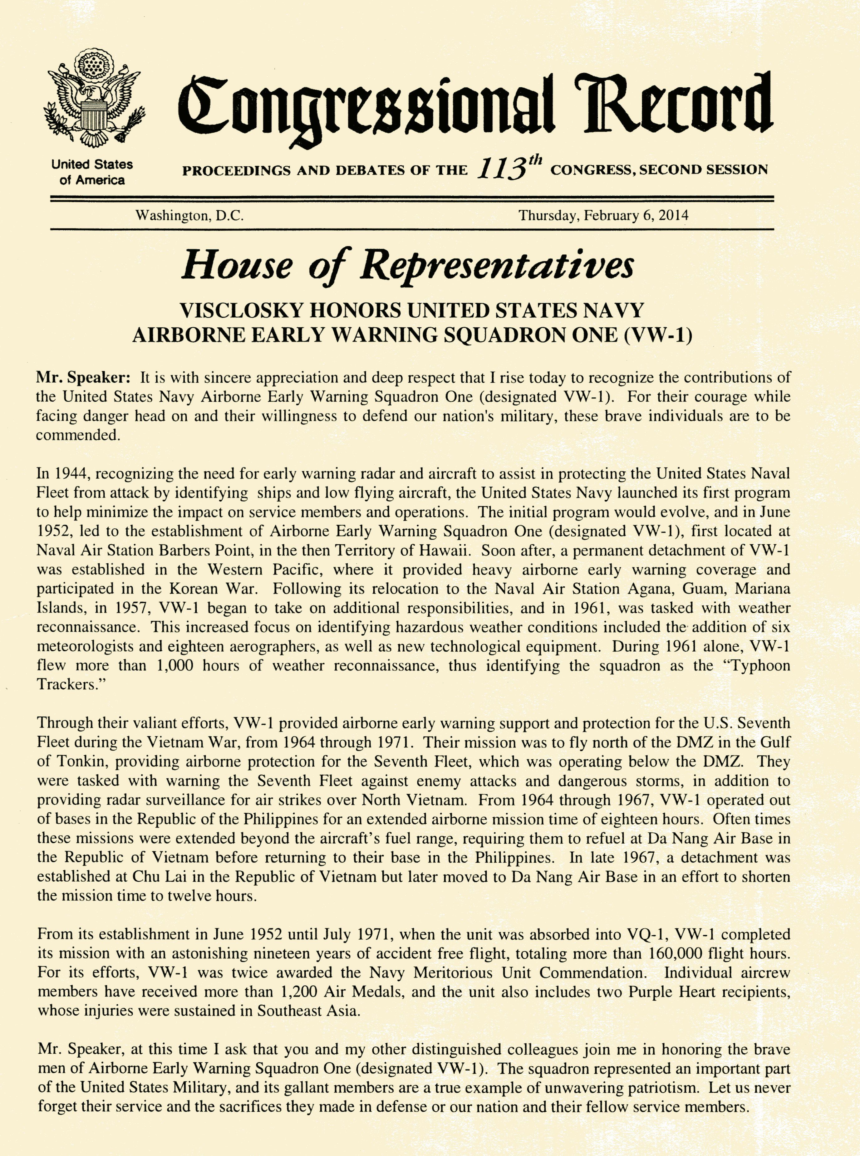 - This Congressional Record was read before the 113th Congress, second session on Thursday, February 6, 2014