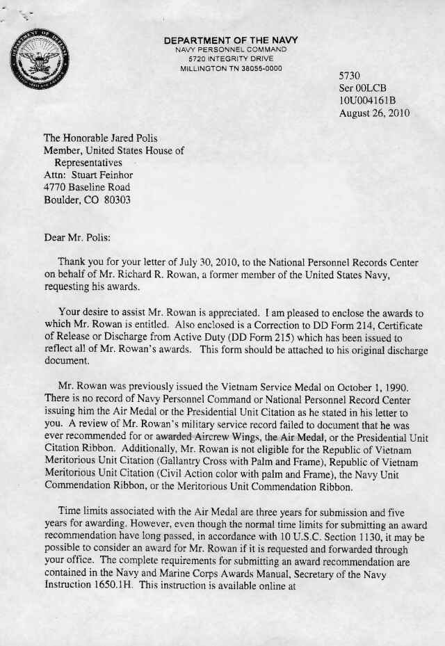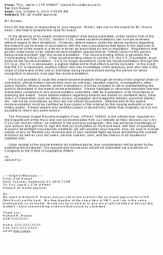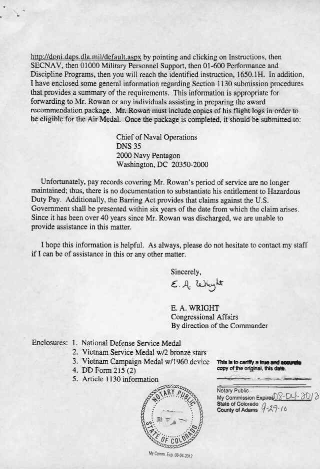In this letter Jack verifies that he was with Richard in Vietnam while assigned to VW-1. He also relates how