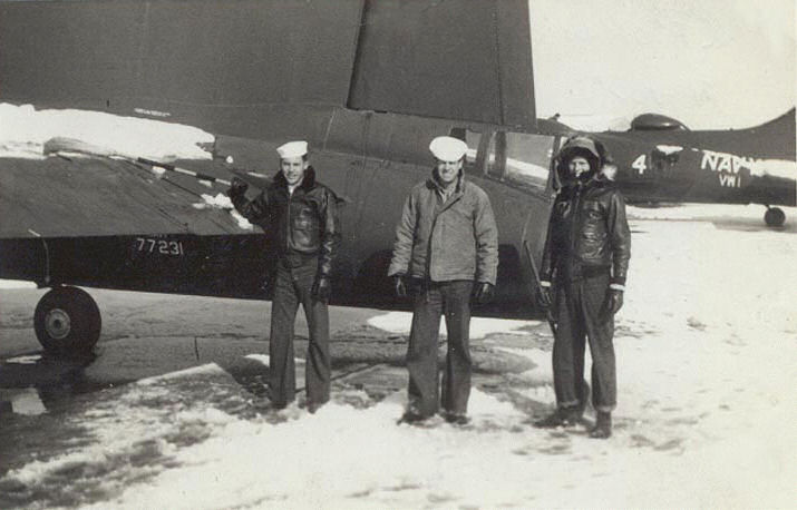 of 77234 TE-7, the only PB-1W with top mounted Radar: Pictured L-R George Stewart AD2 - Floyd Watson AD1 - Al