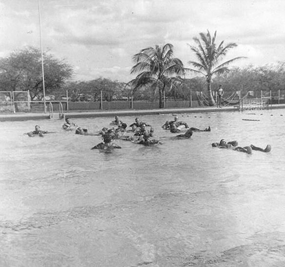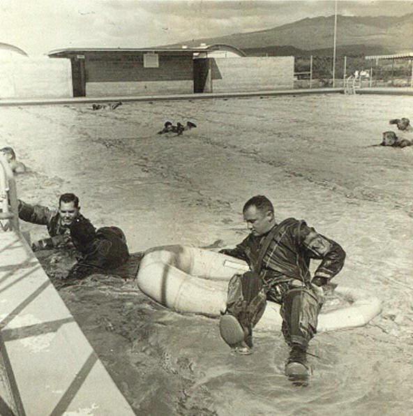 - 1st. picture from the left: 1955. Testing exposure suits Jan 1953, in the NAS Barbers Point pool prior to