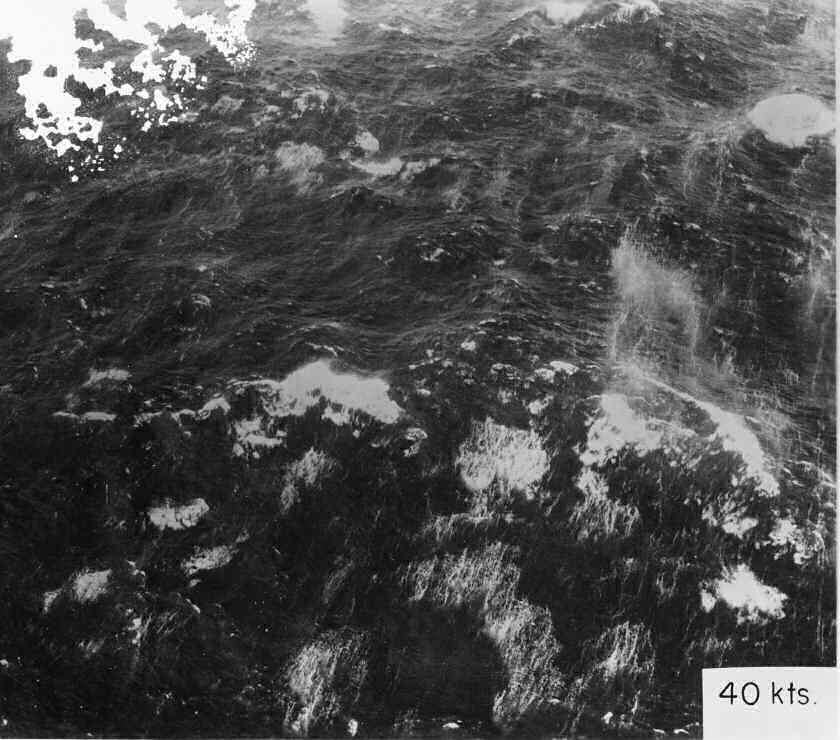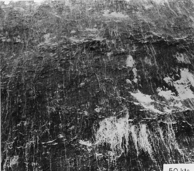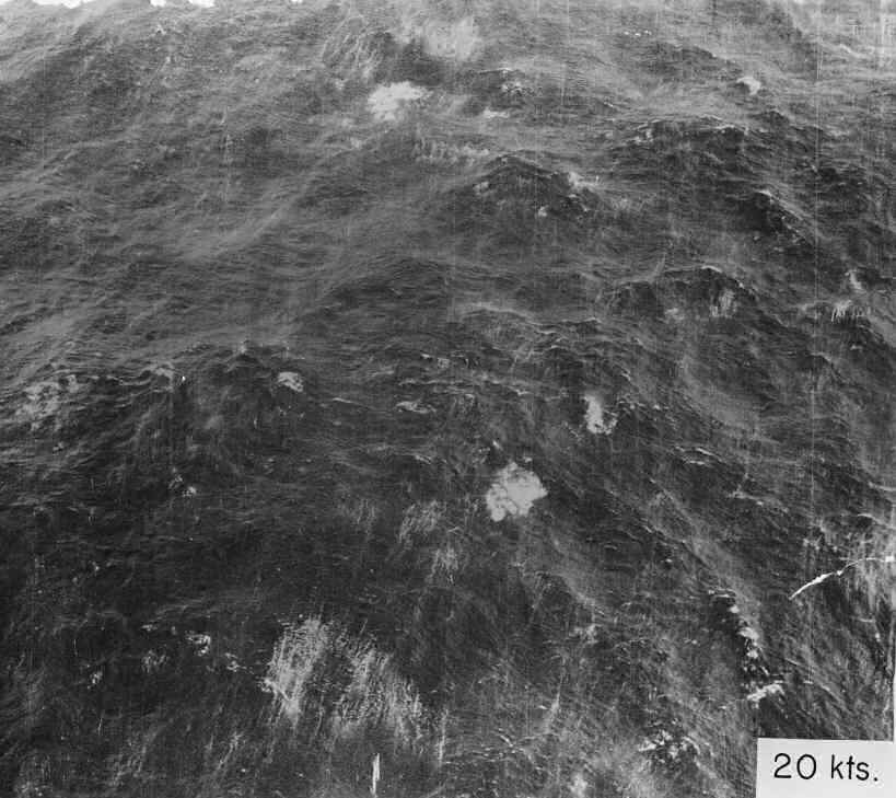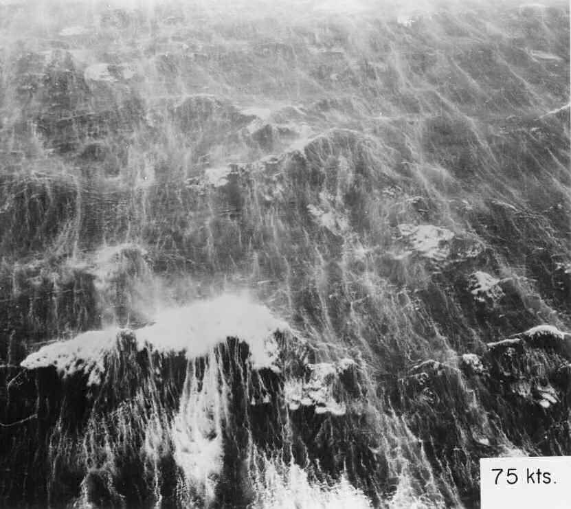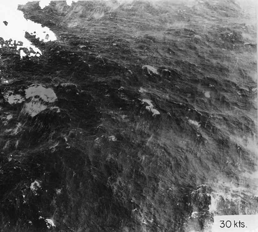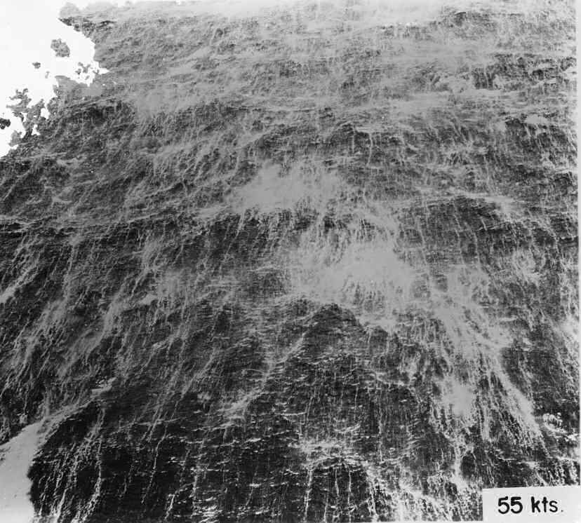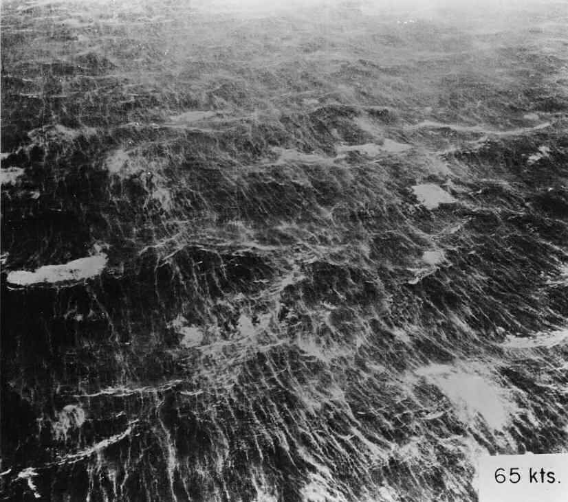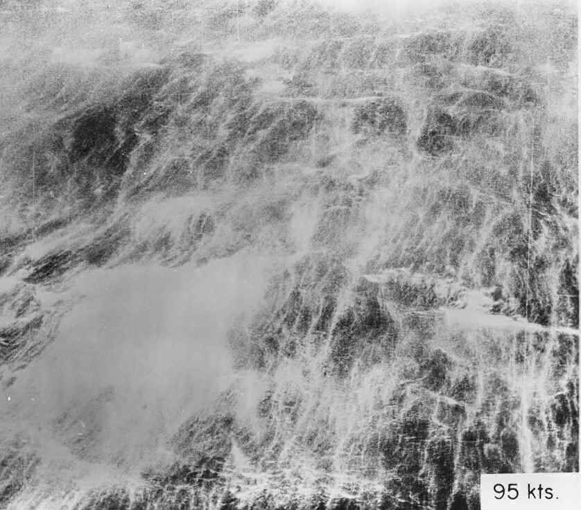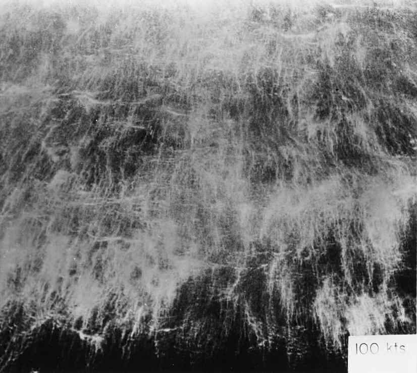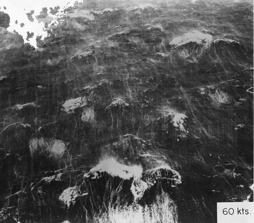 Sea state with surface winds of 130 Kts. The picture shows some film damage in the upper and lower left corners.