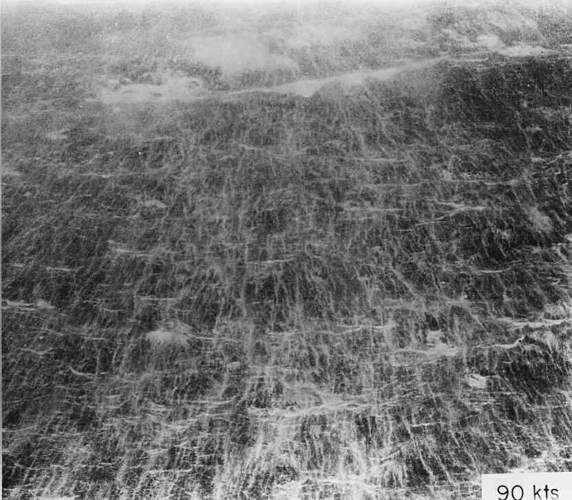 Sea state with surface winds of 85 Kts. At wind speeds of 76 - 100 Kts. sea becomes whiter and whiter from blowing spray and foam. ...The picture shows some film damage in the upper left corner. -