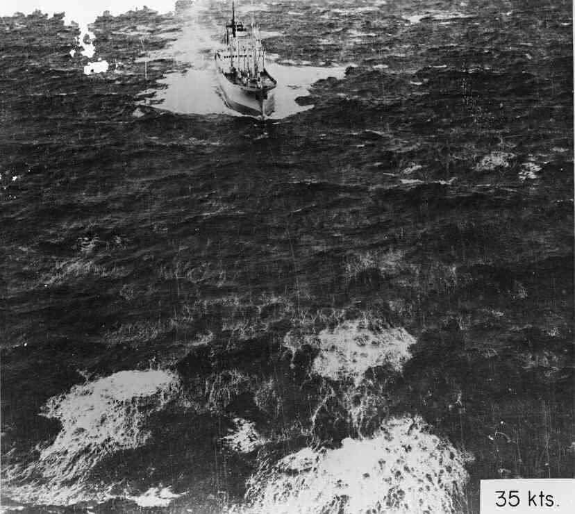 3rd picture from the left: Sea state with surface winds of 60 Kts. The picture shows some film damage in the upper left corner..
