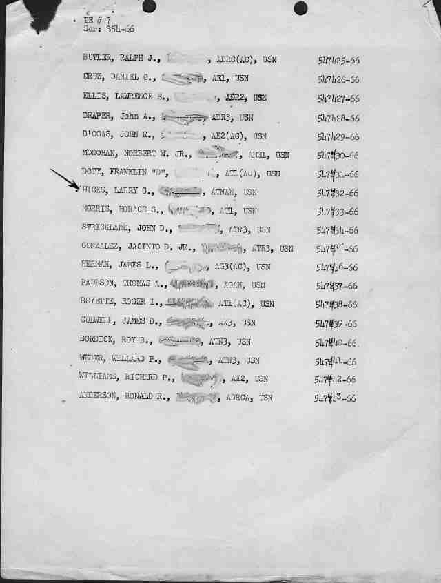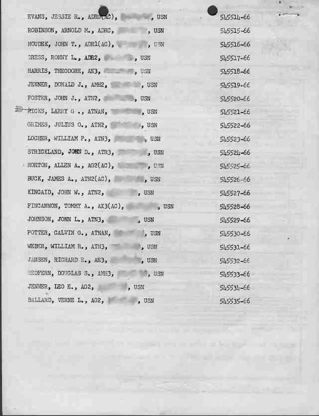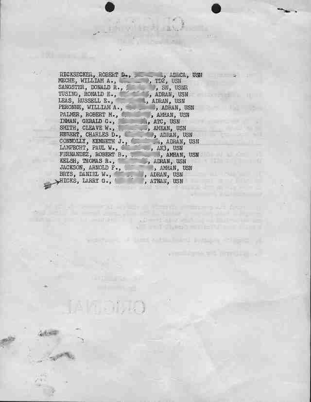 - 1st. picture on left: TAD orders for crew 1 dated 1 Jan 1971. NOTE: service numbers have been rubbed