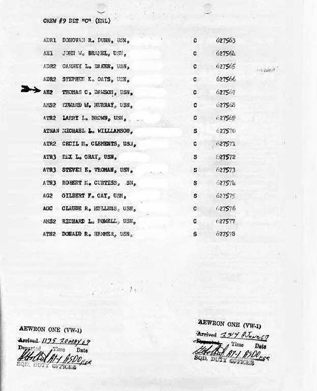 Copy provided by Thomas Dawson AE2 VW-1 67-69 TE-9.. Unless noted otherwise