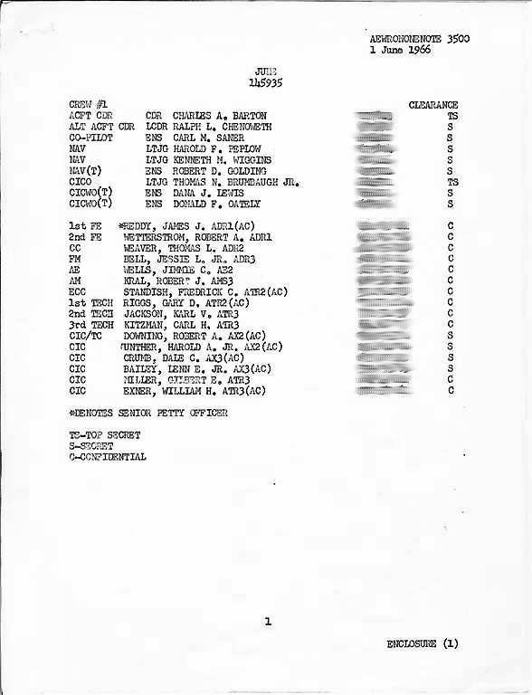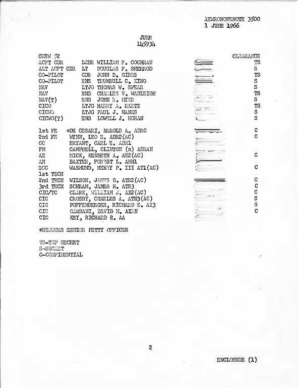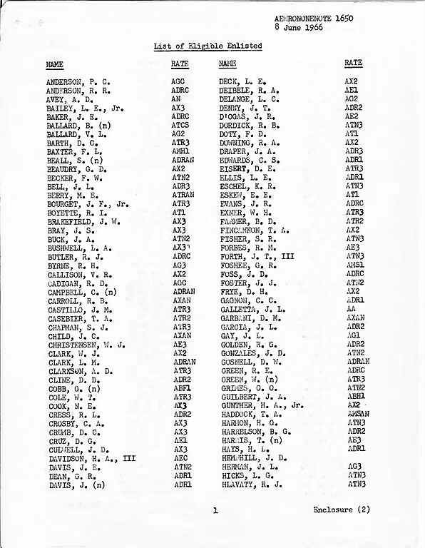 - The purpose of this aewronone note was to establish a list of officers and men and their crew assignments