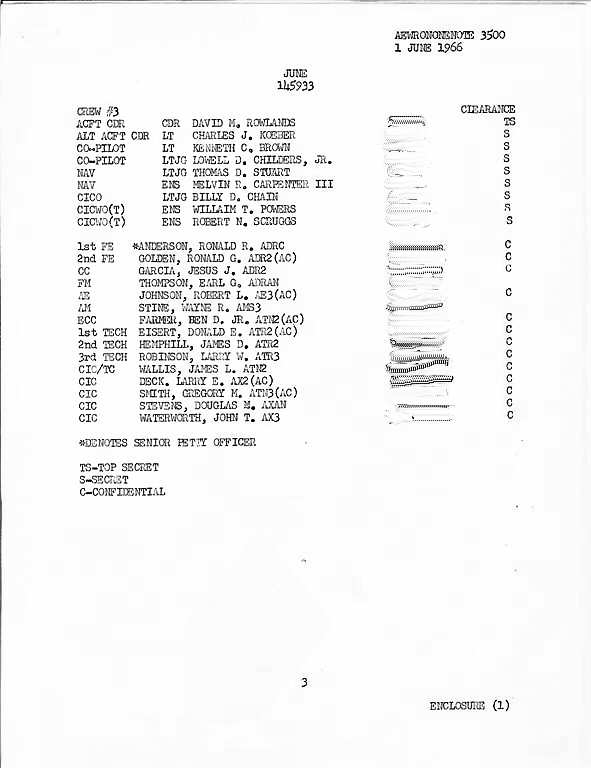 AEWRON ONE Notice 3500 page 3 of enclosure which establishes the makeup of crew #3 to 145933 TE-3.