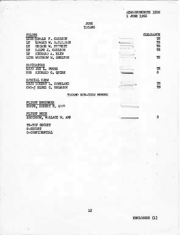 Enclosure #3 covers the time period of 1 January - 31 December. 1966 for TACAMO.