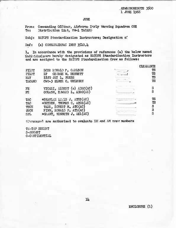 - AEWRON ONE Note 1650 8 June 1966, The purpose of this aewronone note was to establish a list of officers