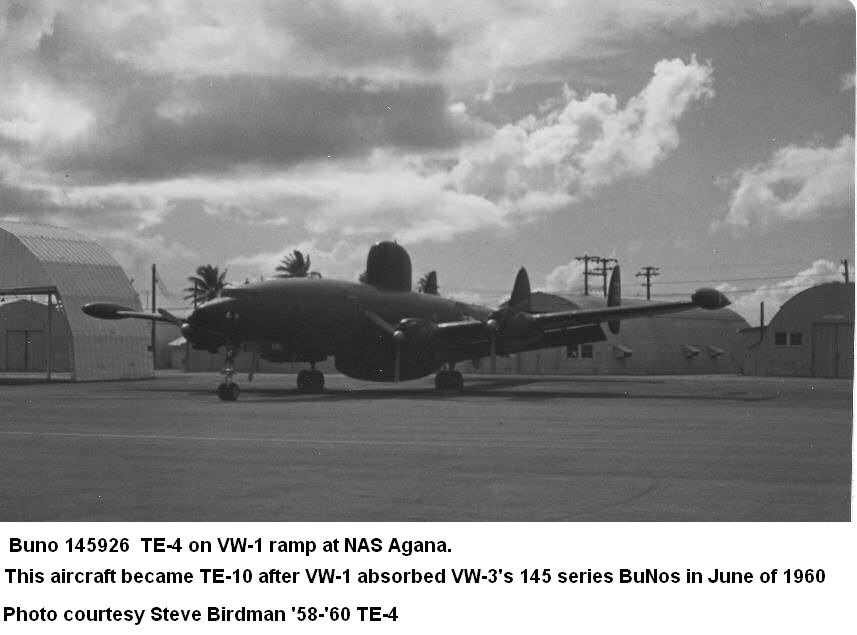145929 was transferred into VW-1 and assigned tail code and side number TE-7 in June of 1960 when VW-3 was decommissioned. For a short period of time after VW-3 decommissioned VW-1 had Buno's 145924 through 145935 as TE-12 - TE-1. hpw.