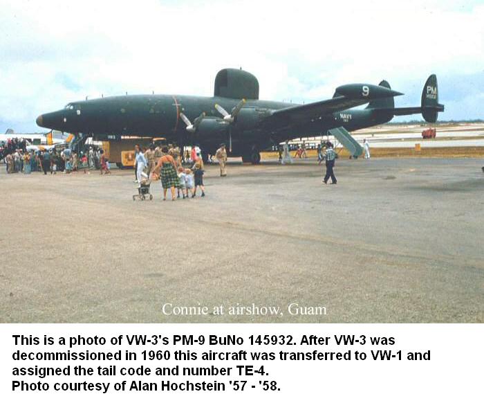 145933 was transferred into VW-1 and assigned tail code and side number TE-3 in June of 1960 when VW-3 was decommissioned. For a short period of time after VW-3 decommissioned VW-1 had Buno's 145924 through 145935 as TE-12 - TE-1. hpw.
