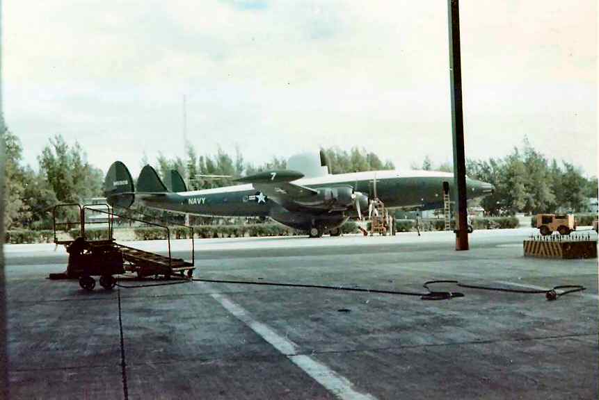 2nd picture from left: This photo of TE-2, one of VW-1's WC-121 Super Connies in the hanger at NAS Agana while
