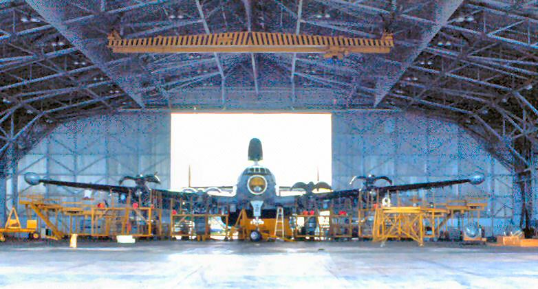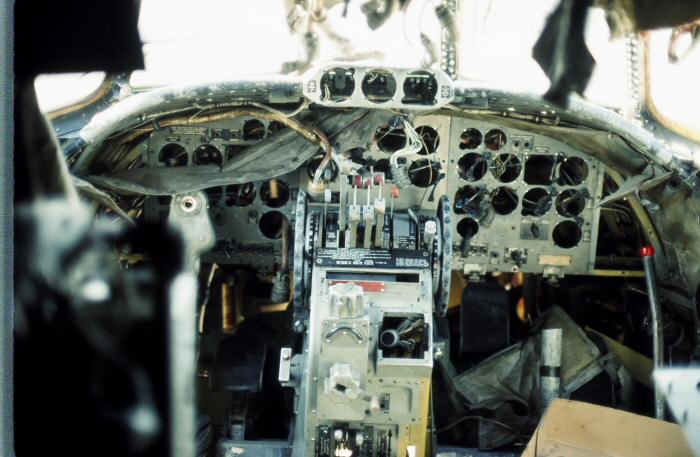 - 1st picture from left: Left half of the lower radome has been removed exposing the APS-20 radar dish.