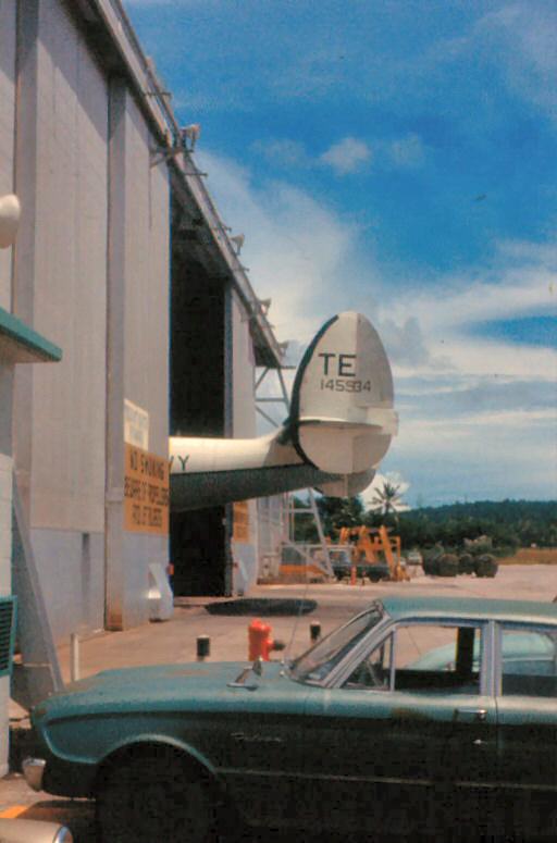 - 1st picture from left:Tail of VW-1's WC-121 BuNo 145934 TE-2 sticking out of hanger at NAS Agana while